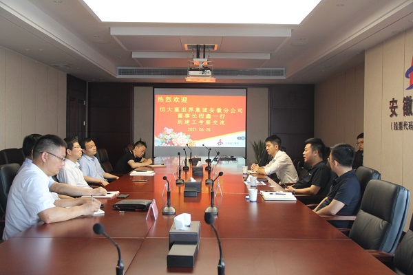 6月28日上午,建工控股黨委委員、股份公司董事長王厚良在安建國際大廈26樓會議室會見恒大旅游集團安徽公司董事長程鑫一行。