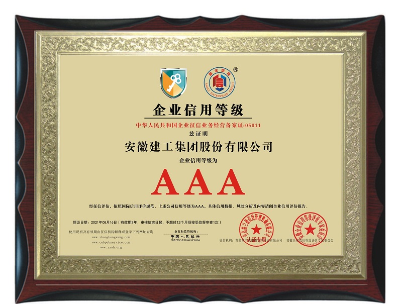 安徽建工作為省屬大型國有上市企業,秉承“創造空間藝術、成就人文生活”的企業使命,堅守“誠信為本、敬業至上”的核心價值觀,恪守“重合同、守信譽”和“質量第一、用戶至上”的服務宗旨,強化信用體系建設,加強項目履約管理,樹立良好品牌形象,以人為本和諧發展。去年以來獲評中國建筑業協會“建筑業AAA級信用企業”、中企聯“2020年第一批AAA級信用企業”“中國承包商80強”“納稅信用A級納稅人”等,在合肥市建筑企業信用綜合評價中獲施工總承包房建專業AAA級和市政專業AA級。