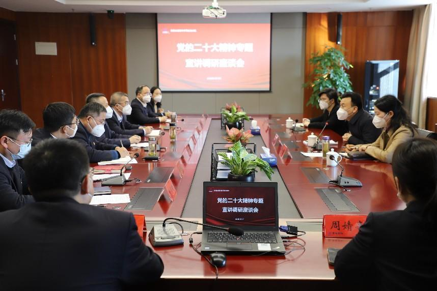 王汪苗圍繞黨的二十大的主題和主要成果、過去5年的工作和新時代10年的偉大變革、馬克思主義中國化時代化、中國式現代化、全面建設社會主義現代化國家的目標任務、堅持黨的全面領導和全面從嚴治黨、以斗爭精神應對風險挑戰等方面,對黨的二十大精神進行了全面深入的宣講闡釋,并與大家展開座談交流。