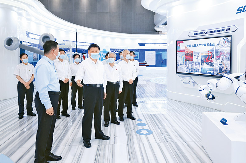 2022年8月16日至17日,中共中央總書記、國家主席、中央軍委主席習近平在遼寧考察。這是17日下午,習近平在沈陽新松機器人自動化股份有限公司展廳,了解公司生產經營、自主創新情況。 新華社記者 鞠鵬/攝