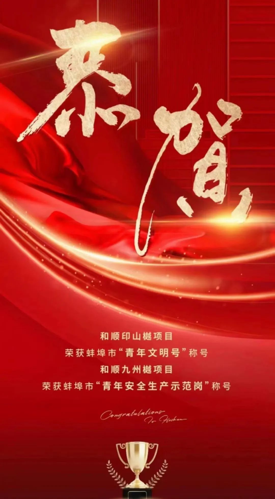 和順印山樾項目、和順九州樾項目分別榮獲2022年度蚌埠市“青年文明號”、“青年安全生產示范崗”稱號