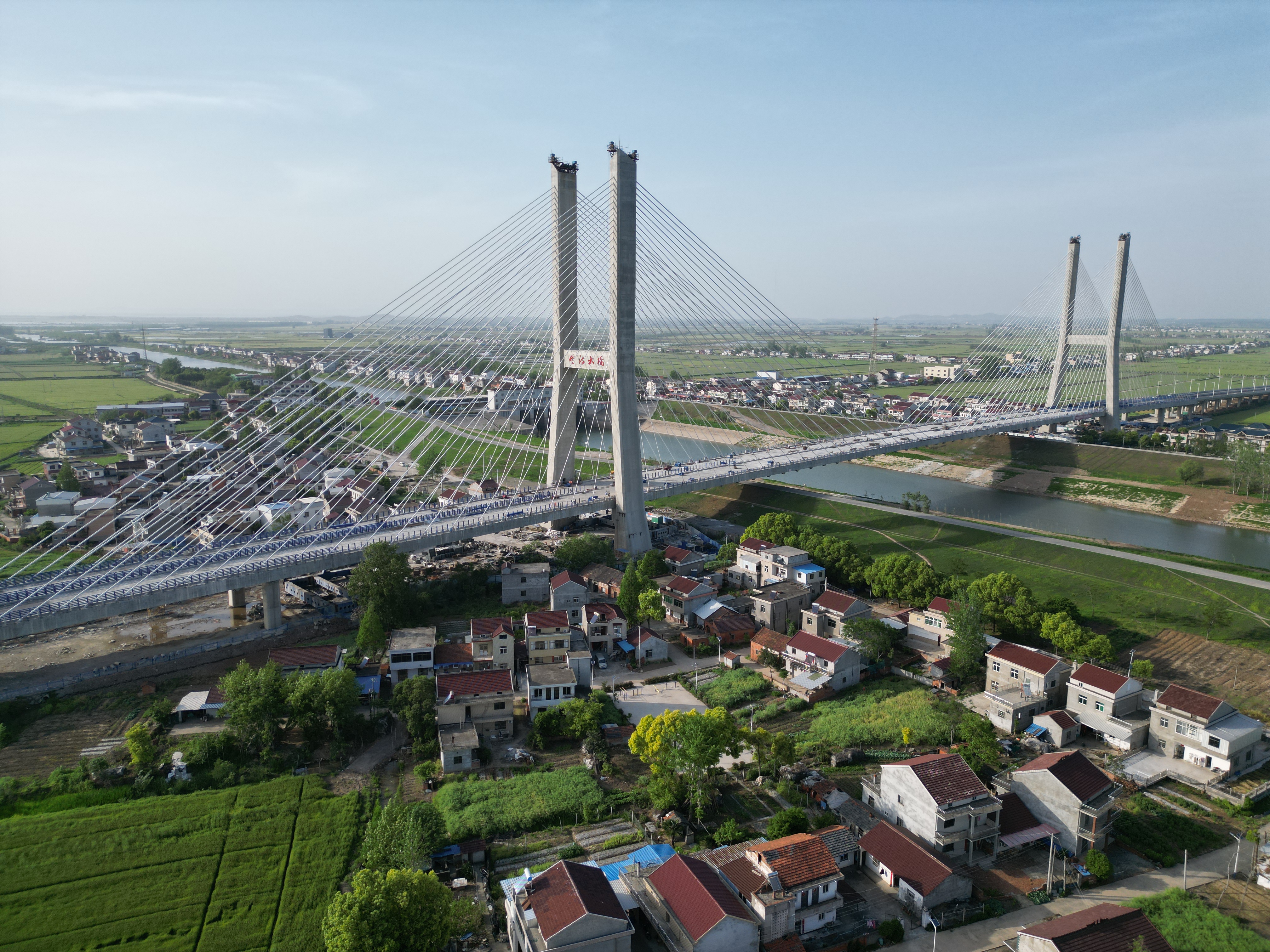 項目控制性工程楊灣河特大橋全長1322米,由685米雙塔預應力混凝土斜拉橋與637米東西引橋組成,主塔塔高110米,其中主跨365米,是安徽省在建同類預應力鋼筋混凝土斜拉橋第二大跨徑橋梁,僅次于銅陵長江公路大橋,也是安徽建工集團目前承接單跨跨徑最大的橋梁工程。