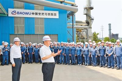 馬鞍山市因鋼而設(shè)、因鋼而興。習(xí)近平來到中國寶武馬鋼集團(tuán),了解企業(yè)生產(chǎn)經(jīng)營情況,察看重點(diǎn)產(chǎn)品展示。隨后,習(xí)近平走進(jìn)優(yōu)質(zhì)合金棒材車間,察看加熱爐、初軋機(jī)、中軋機(jī)等運(yùn)行情況。車間外,企業(yè)勞動模范、工人代表看到總書記來了,熱烈鼓掌。習(xí)近平親切地同大家打招呼。他指出,疫情發(fā)生以來,馬鋼克服困難,率先復(fù)工復(fù)產(chǎn),上半年產(chǎn)量和營收同比實(shí)現(xiàn)“雙升”。要抓住深化國有企業(yè)改革和推動長三角一體化發(fā)展的重大機(jī)遇,加強(qiáng)新材料新技術(shù)研發(fā),開發(fā)生產(chǎn)更多技術(shù)含量高、附加值高的新產(chǎn)品,增強(qiáng)市場競爭力。勞動模范是共和國的功臣,要大力弘揚(yáng)勞模精神。