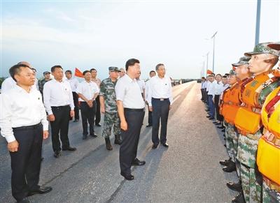 大堤上,習(xí)近平親切看望慰問了在防汛抗洪救災(zāi)斗爭中犧牲同志的家屬、防汛抗洪一線人員、先進(jìn)典型代表和參加抗洪搶險的部隊(duì)官兵,并向全國奮戰(zhàn)在防汛抗洪救災(zāi)一線的同志們表示誠摯的問候。他強(qiáng)調(diào),今年入汛以來,南北方江河湖泊接連出現(xiàn)超警戒水位險情。廣大干部群眾和人民解放軍、武警官兵堅(jiān)決響應(yīng)黨和政府號召,發(fā)揚(yáng)不怕累苦、不怕疲勞、不怕犧牲的精神斗志,堅(jiān)守在防汛抗洪救災(zāi)第一線,涌現(xiàn)了許多先進(jìn)典型和感人事跡,展現(xiàn)了中國人民眾志成城、頑強(qiáng)拼搏、敢于勝利的英雄氣概,書寫了洪水無情人有情的人間大愛。黨和人民感謝你們!
