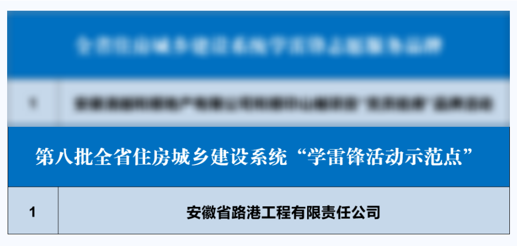 日前,安徽省住建廳發布全省住房城鄉建設系統學雷鋒志愿服務品牌和第八批“學雷鋒活動示范點”“崗位學雷鋒標兵”名單,建工路港榮獲省級“學雷鋒活動示范點”。
