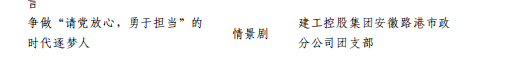 近日,共青團(tuán)安徽省委下發(fā)《關(guān)于第五屆全省“青年之家”優(yōu)秀活動(dòng)項(xiàng)目、全省優(yōu)秀微團(tuán)課及第一屆全省優(yōu)秀藝術(shù)團(tuán)課評(píng)選結(jié)果的通報(bào)》。建工路港上報(bào)的《爭做“請(qǐng)黨放心,勇于擔(dān)當(dāng)”的時(shí)代逐夢人》、《中國青年》2項(xiàng)作品均榮獲第一屆全省優(yōu)秀藝術(shù)團(tuán)課二等獎(jiǎng)。
