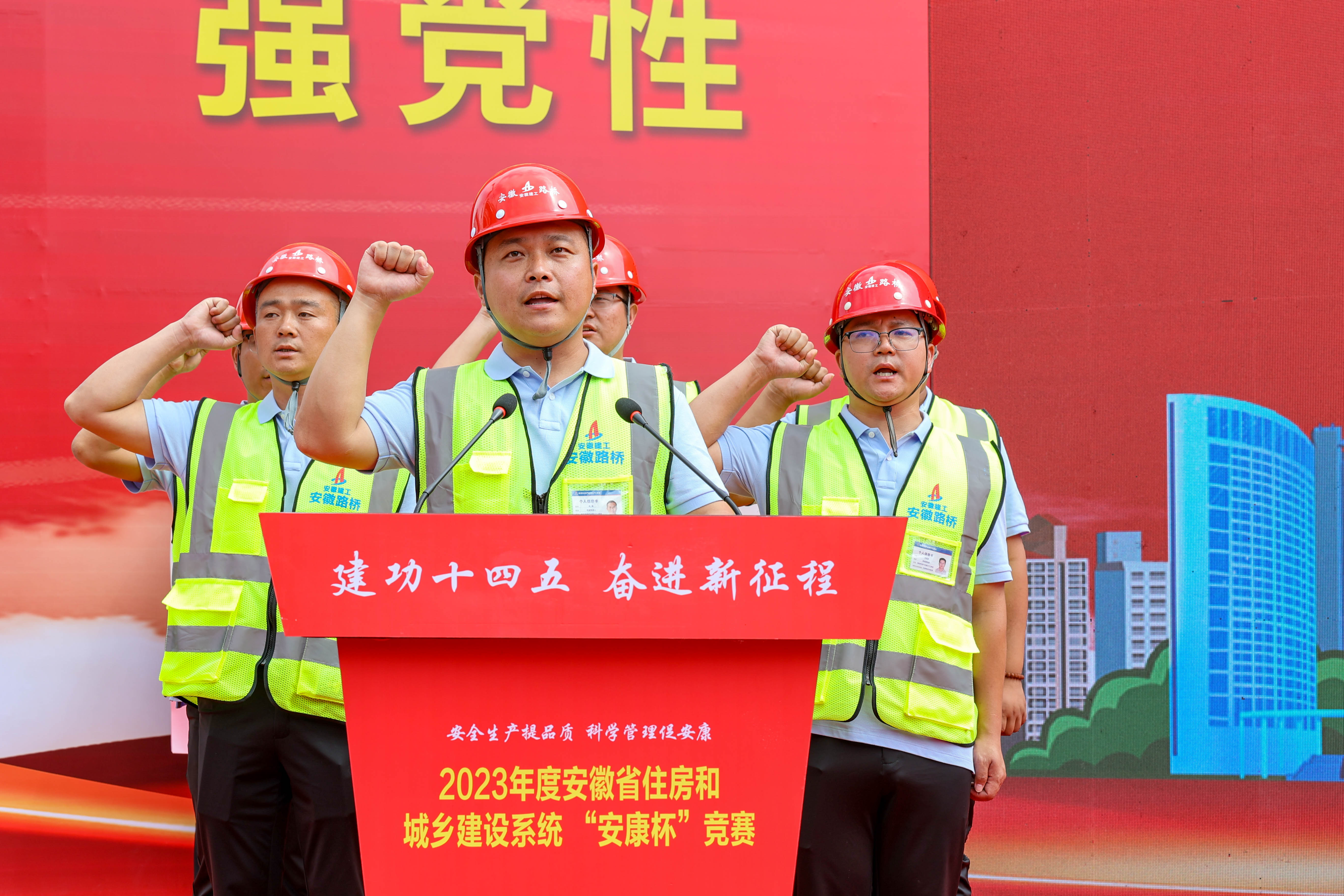 孫學(xué)軍在致辭中向省住建廳、省總工會(huì)對(duì)安徽建工集團(tuán)多年來(lái)的關(guān)心、信任和支持表示感謝。他指出,2022年以來(lái),安徽建工集團(tuán)按照省委省政府“將安徽建工集團(tuán)進(jìn)一步做強(qiáng)做優(yōu)做大,創(chuàng)一流業(yè)績(jī),爭(zhēng)當(dāng)中國(guó)建筑企業(yè)排頭兵”的指示要求,全面開(kāi)啟“大發(fā)展、轉(zhuǎn)型發(fā)展、高質(zhì)量發(fā)展”新局面。他介紹了今年一季度集團(tuán)主要經(jīng)濟(jì)指標(biāo)完成情況及良好的發(fā)展勢(shì)頭,他表示,安徽建工集團(tuán)將以此次活動(dòng)為契機(jī),以更高站位強(qiáng)化思想認(rèn)識(shí),全面深入貫徹黨的二十大精神和習(xí)近平總書記關(guān)于安全生產(chǎn)工作重要指示精神,以實(shí)際行動(dòng)落實(shí)競(jìng)賽活動(dòng)各項(xiàng)部署要求,為推動(dòng)我省建筑業(yè)轉(zhuǎn)型高質(zhì)量發(fā)展,構(gòu)建平安安徽作出積極貢獻(xiàn)。