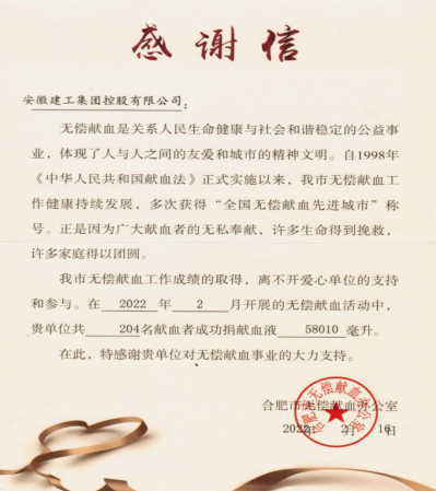 2月10日獻血倡議發(fā)起,集團各級工會組織積極響應(yīng),廣泛宣傳,短短一天就有近300名職工踴躍報名參加。獻血當(dāng)天分別設(shè)立了安建國際大廈獻血點和安徽三建獻血點,共計204名職工成功獻血共計58010毫升,助力了合肥市血站確保北京冬奧會血液調(diào)配保障任務(wù)的完成,彰顯了建工職工無私奉獻、積極向上、勇?lián)鐣?zé)任的良好品格。