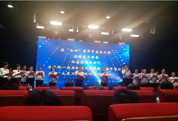 活動現場,與會團員青年聽取了項目負責人關于項目建設情況、青年職工在項目建設過程中勇當生力軍和突擊隊的情況介紹,共同參觀了創新館展廳。在主題團日環節,突出儀式感召作用,先后舉行了唱國歌、重溫入團誓詞、唱團歌、觀看《五四運動 神州覺醒》教育片,進行團旗下的演講等儀式教育。在演講環節,來自安徽三建的團員青年精心編排了7個詩朗誦節目,圍繞在新時代繼續弘揚“五四”精神、爭做擔當民族復興大任的時代新人等內容,結合本職工作崗位,分享心得體會。