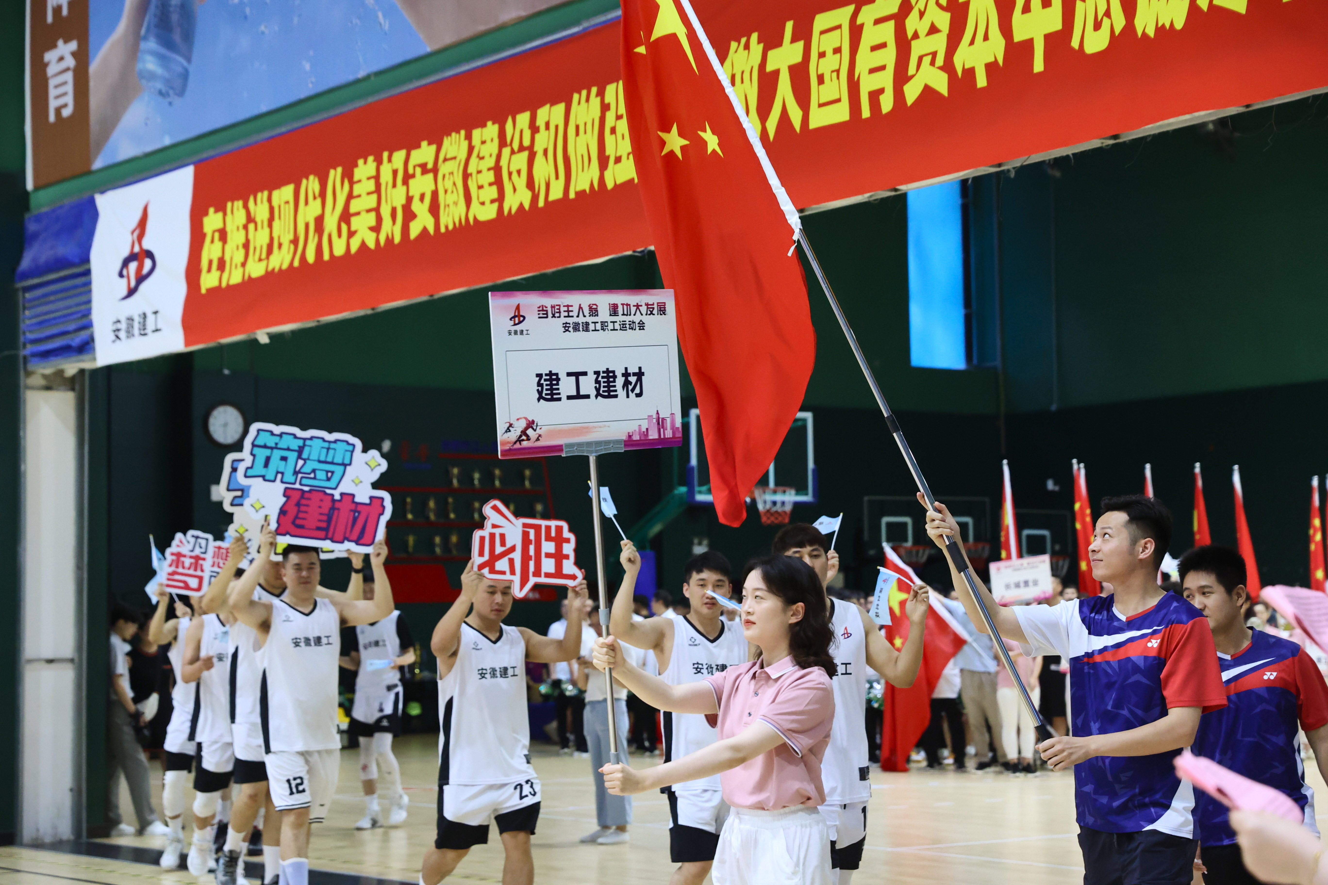 6月28日上午,“當好主人翁 建功大發展”安徽建工職工運動會隆重開幕。省建設建材工會(省住建廳文明辦)主任、一級調研員程德旺,省建設建材工會副主任邱亮,安徽省職工文化體育協會會長陳剛應邀出席開幕式,控股公司黨委委員、副總經理楊廣亮,控股公司工會副主席、股份公司副總經理邢應梅參加了活動。