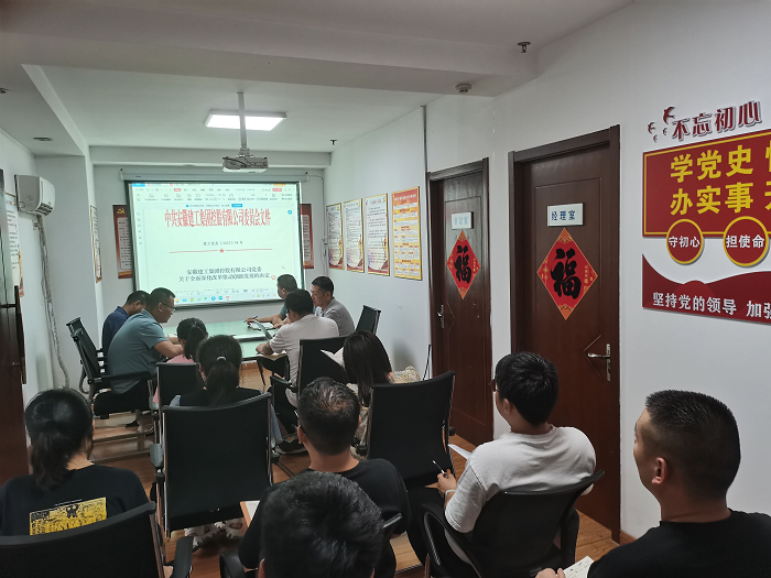 7月15日上午,合肥分公司團支部組織肥西安信立士項目團員青年開展學習中國共產主義青年團第十九次全國代表大會報告、共青團安徽省第十五次代表大會精神學習以及集團黨委主題教育黨課報告會學習。