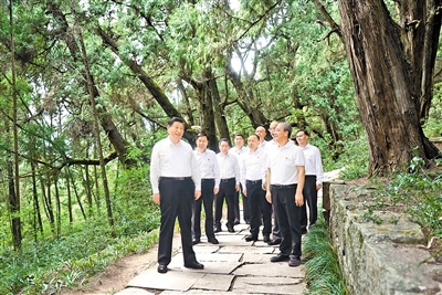 7月25日至27日,中共中央總書記、國家主席、中央軍委主席習近平在四川考察。這是25日下午,習近平在廣元市劍閣縣翠云廊考察。 |
