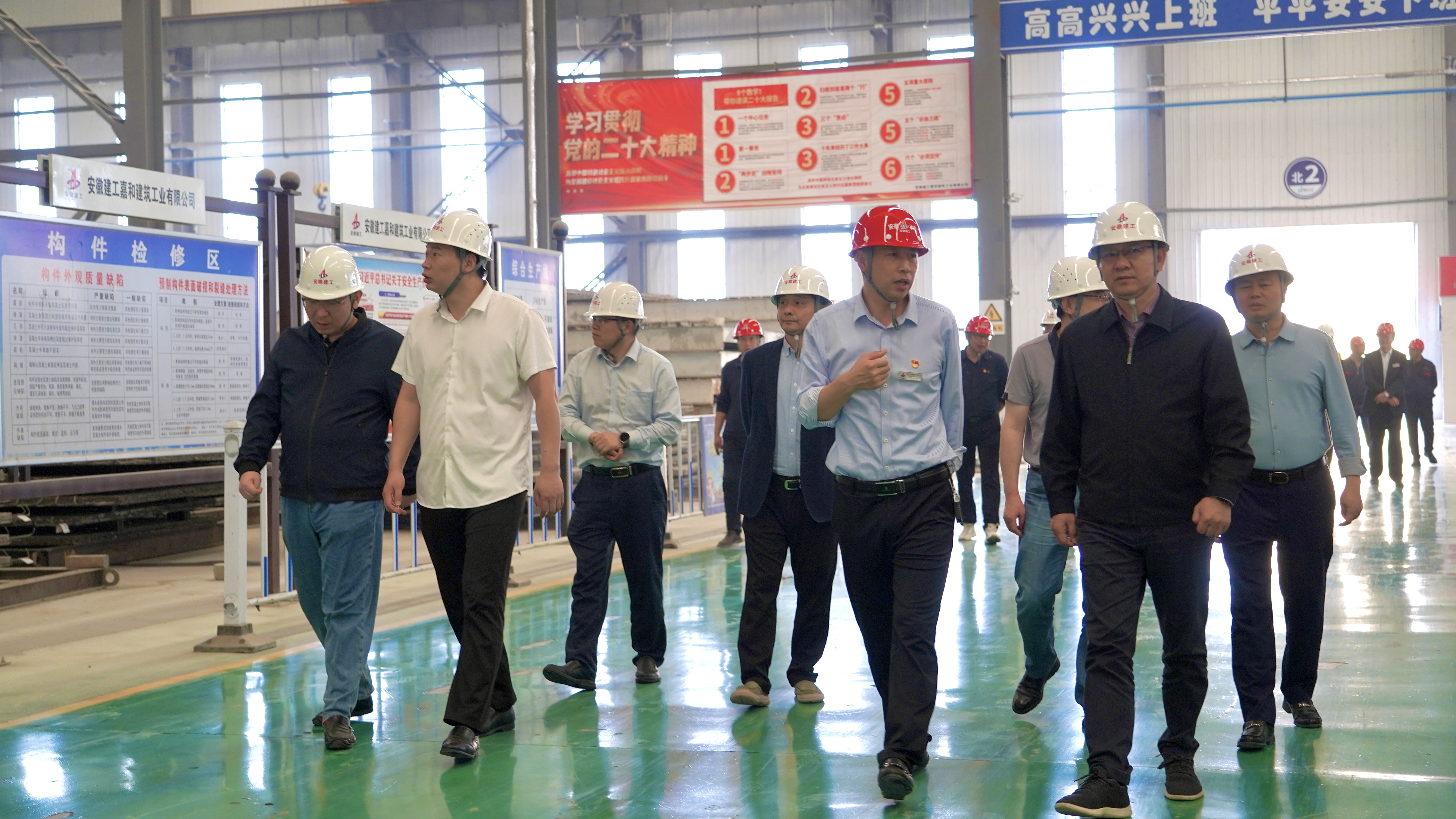 建工工業化黨委副書記、總經理錢玉寶,黨委委員、副總經理、嘉和工業公司黨支部書記、董事長、總經理金其濤和嘉和工業公司相關負責人參加調研。