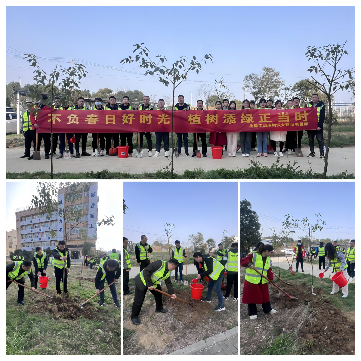 桐城大建設項目黨支部組織職工在項目部駐地開展“不負春日好時光 植樹添綠正當時”主題植樹活動。