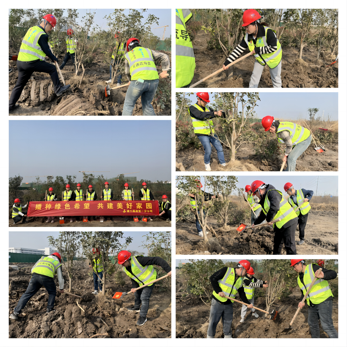 一分公司聯合江北集中區大龍灣三橋南側片區道路工程二期項目部組織黨員干部職工一同舉辦“播種綠色希望 共建美好家園”義務植樹活動。