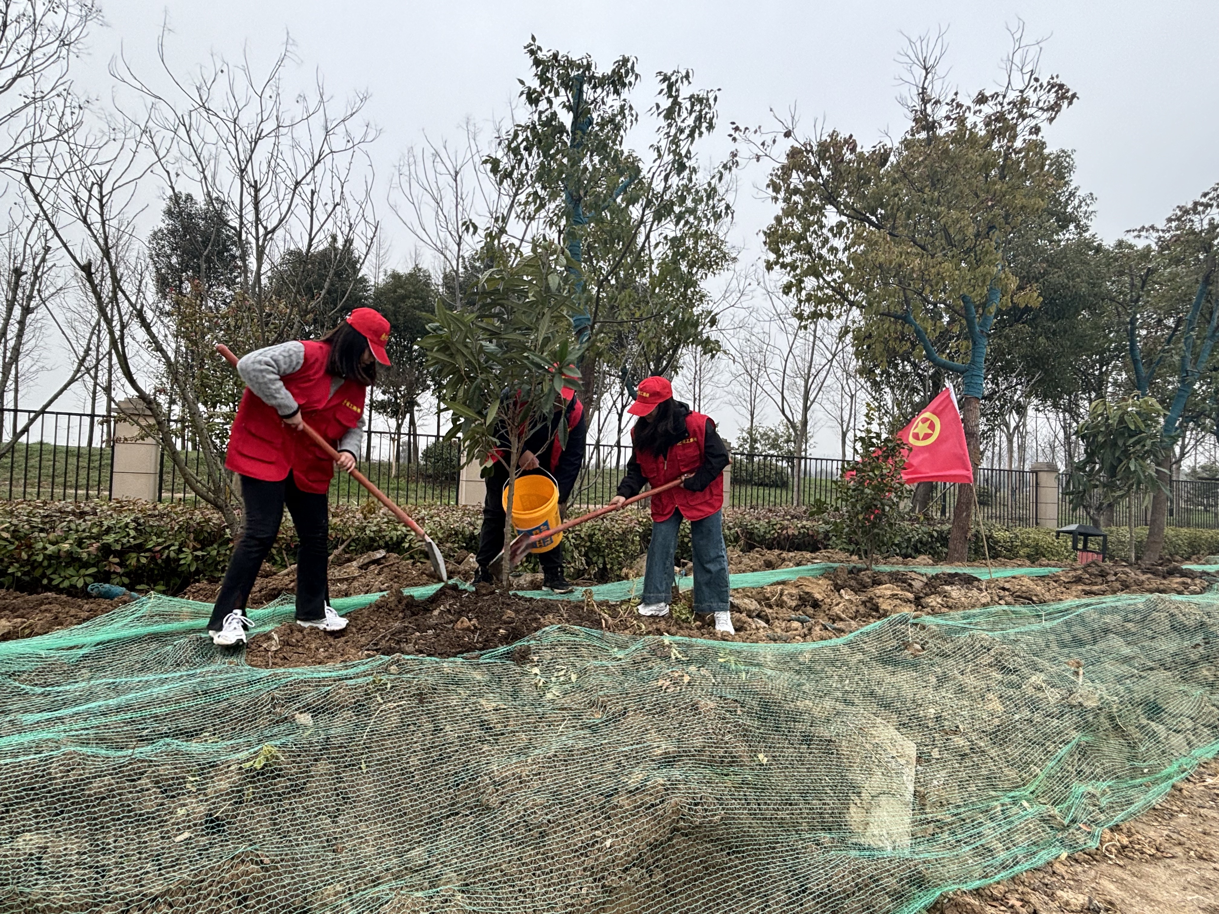 活動中青年黨員、團員積極響應,一早出發趕赴淮桐項目駐地,參與人員相互協作、默契配合,揮鍬鏟土、扶苗填坑、培土澆水,有條不紊地完成了一系列流程,展現了青年們對綠色美好生活的向往與追求。