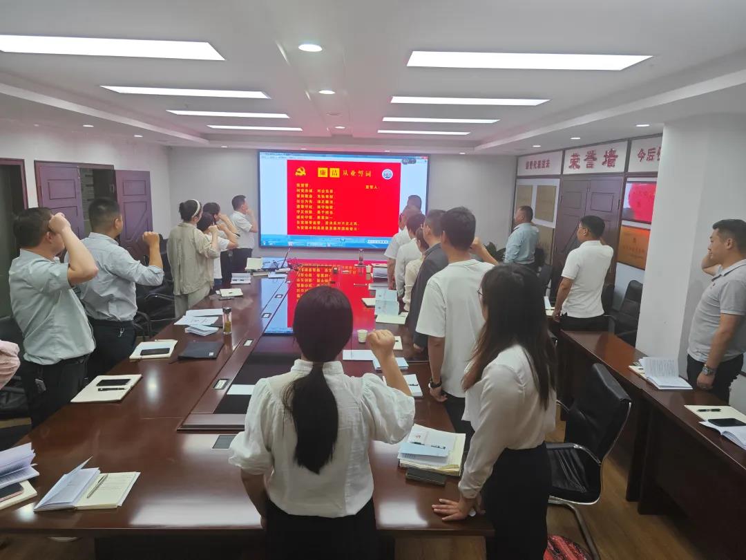 一分公司黨總支開展“筑牢廉潔防線 嚴(yán)守紀(jì)律底線”主題黨日活動(dòng),集中學(xué)習(xí)了習(xí)近平總書記在中央全面深化改革委員會(huì)第四次會(huì)議上的重要講話精神、《中國(guó)共產(chǎn)黨紀(jì)律處分條例》及集團(tuán)和公司相關(guān)文件要求。開展了集體廉潔談話,通報(bào)了集團(tuán)系統(tǒng)內(nèi)違法違規(guī)典型案例,集中觀看警示教育片《清除國(guó)企蛀蟲——靠企吃企典型案件警示錄》,與會(huì)人員進(jìn)行了廉潔從業(yè)宣誓。
