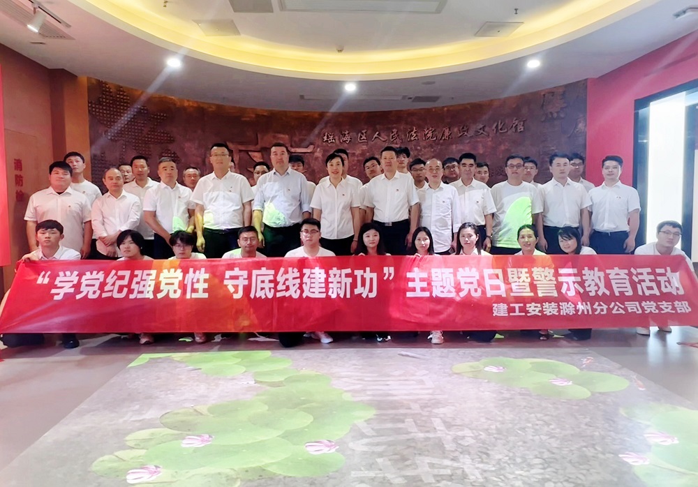 建工安裝滁州分公司黨支部組織分公司40余人赴瑤海區人民法院廉政文化館開展“學黨紀強黨性、守底線建新功”主題黨日暨警示教育活動。此次活動給大家上了一堂全面生動的反腐倡廉警示教育課,大家紛紛表示,在今后的工作中,一定要時刻保持警醒自律,存戒懼、守底線,不斷增強防微杜漸和拒腐防變能力。