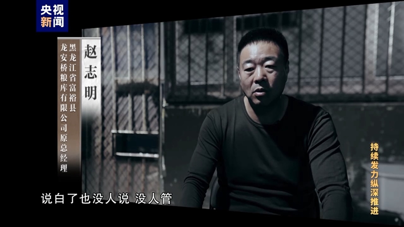 趙志明曾是黑龍江省齊齊哈爾市富裕縣龍安橋糧庫總經理,經查,他貪污糧庫公款2400萬余元,挪用公款1400萬余元,2023年3月被判處有期徒刑14年。龍安橋糧庫是在2015年由5家國有糧庫改革重組的,富裕縣政府持股51%、民營企業鼎倉公司持股49%。趙志明原本是鼎倉公司的老板,在這次改制中當上了龍安橋糧庫總經理。