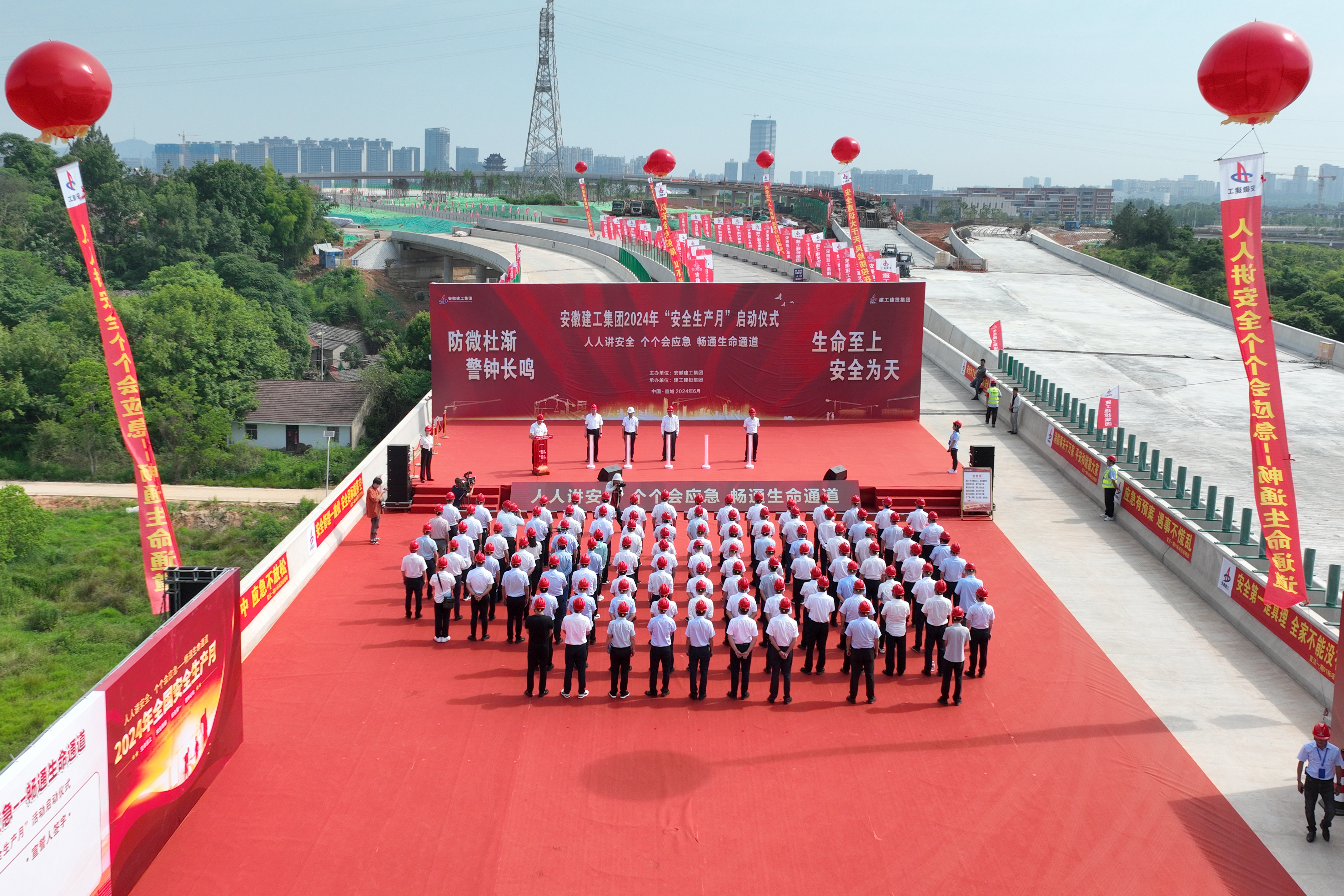為深入貫徹落實習近平總書記關于安全生產的重要論述和重要指示批示精神,6月3日上午,安徽建工集團在所屬建工建投集團宣涇高速一期01標項目舉辦2024年“安全生產月”活動啟動儀式暨瀝青面層無人攤壓觀摩會。