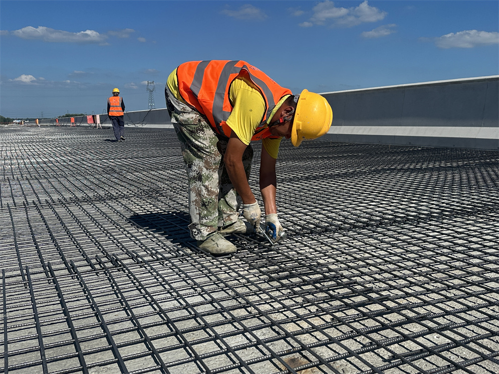 同樣烈日炎炎的五蒙高速05標項目施工現場,工人們不懼“烤”驗,在各條戰線上克服天氣不利影響,以良好的精神狀態投入到工作中。他們心無旁騖,在刺眼的陽光下和鋼筋水泥“較勁”,始終堅守在各自的工作崗位上,以奮力拼搏的實際行動,戰高溫、斗酷暑、保安全、促生產,保質保量完成下發的施工節點任務。