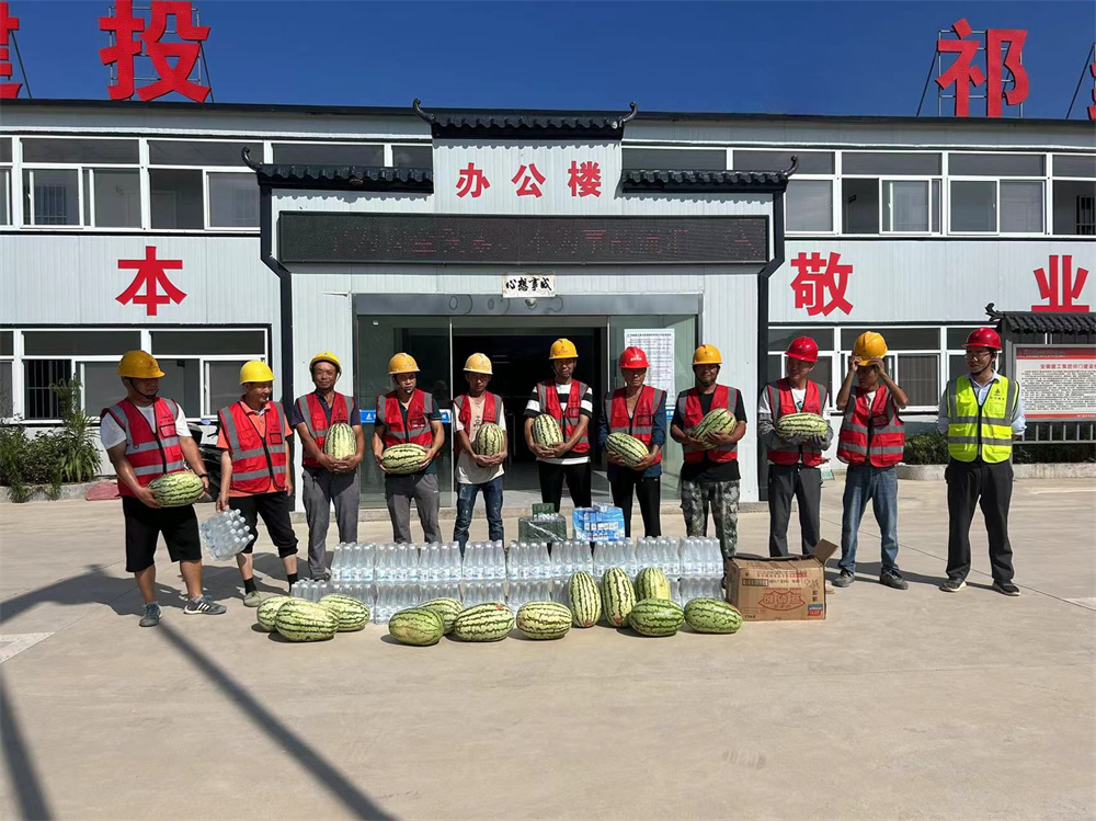 為了確保建筑工人的身體健康和施工安全,項目部高度重視防暑降溫工作,提前制定了詳細的防暑降溫方案。項目部實行“抓兩頭、歇中間”的作息制度,讓工人們能夠在相對涼爽的時間段進行作業。在施工現場,項目部設置了多個防暑降溫休息點,配備了充足的飲用水、綠豆湯、西瓜、藿香正氣水等消暑“神器”,保障一線建設者度過高溫天氣。