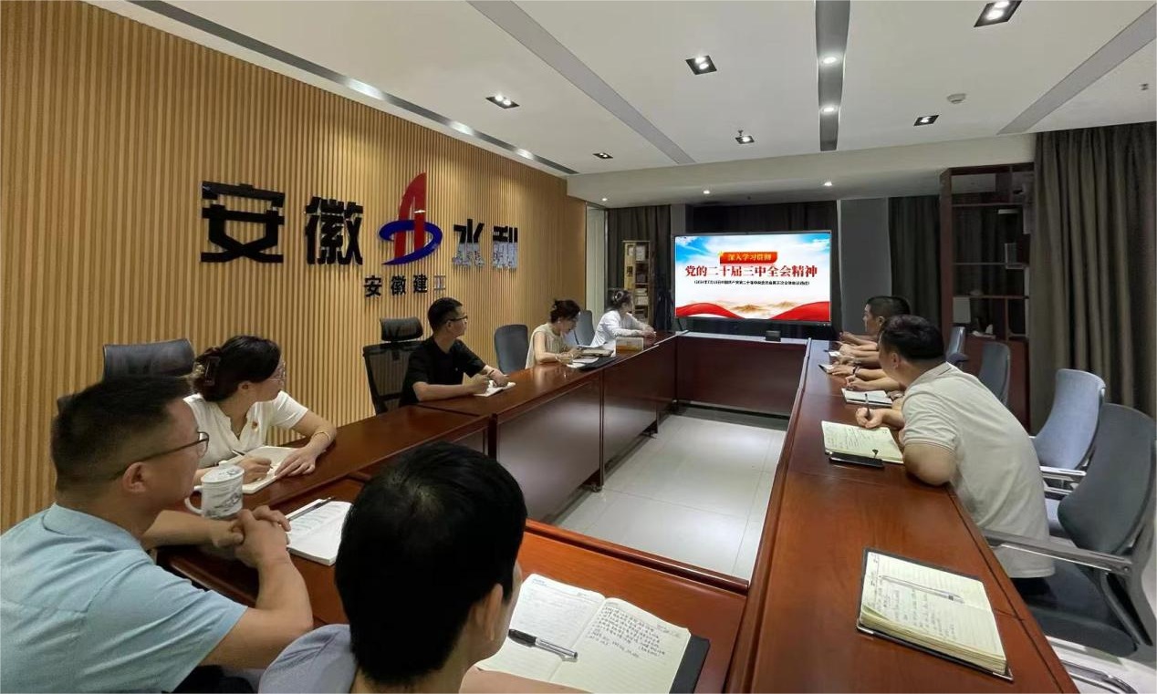 黨的二十屆三中全會是在以中國式現代化全面推進強國建設、民族復興偉業的關鍵時期召開的一次十分重要的會議。大會勝利閉幕后,安徽水利黨委第一時間專題傳達學習全會精神,系統部署學習宣傳貫徹工作。公司所屬各單位也迅速行動,認真領悟進一步全面深化改革、推進中國式現代化的戰略部署,緊密聯系企業發展實際,聚力實干爭先,謀劃落實舉措,迅速掀起學習宣傳貫徹熱潮。