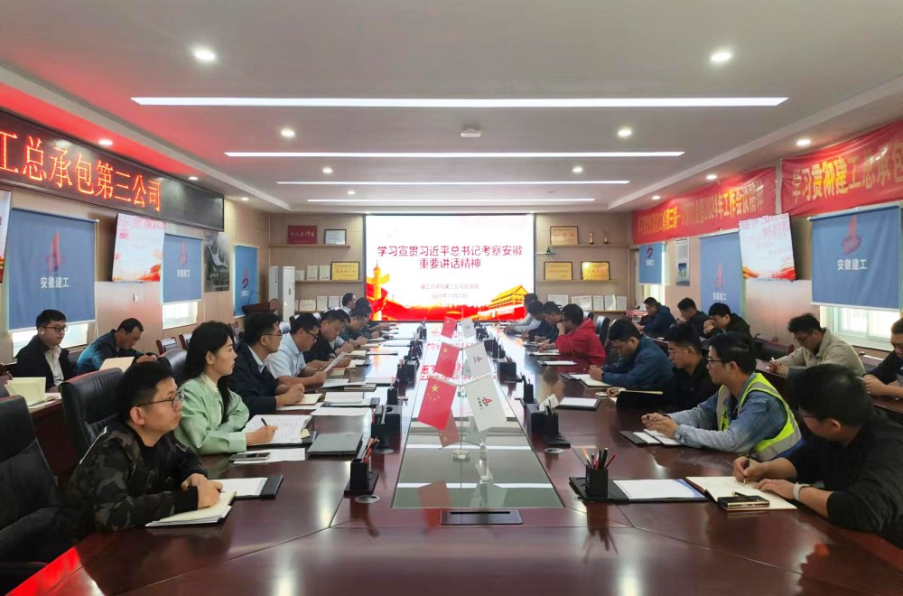 編者按:10月17日至18日,習近平總書記時隔四年再次親臨安徽考察并發(fā)表重要講話,為奮力譜寫中國式現(xiàn)代化安徽篇章指明了前進方向、提供了根本遵循。連日來,建工總承包所屬單位迅速掀起學習宣傳貫徹熱潮。即日起,公司官微開設專題,報道公司及所屬單位學習貫徹落實習近平總書記考察安徽重要講話精神的思路舉措和實踐行動。