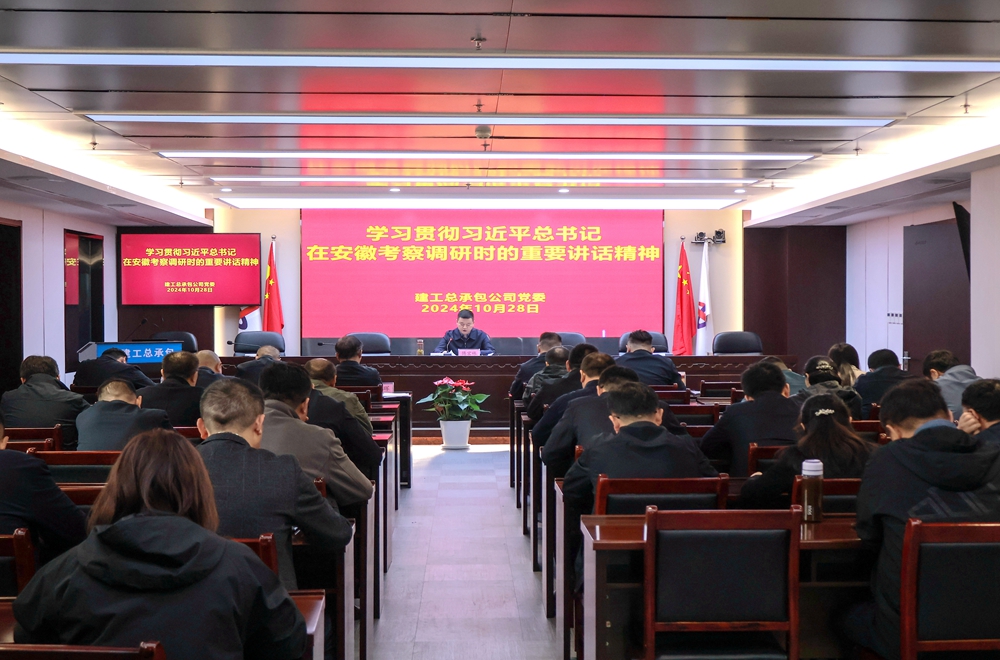 10月28日上午,建工總承包黨委召開黨委理論中心組擴大學習會議,專題學習習近平總書記考察安徽重要講話精神。公司黨委書記、總經理傅宏林主持會議并講話,公司班子成員,所屬單位和機關部門負責人參加。