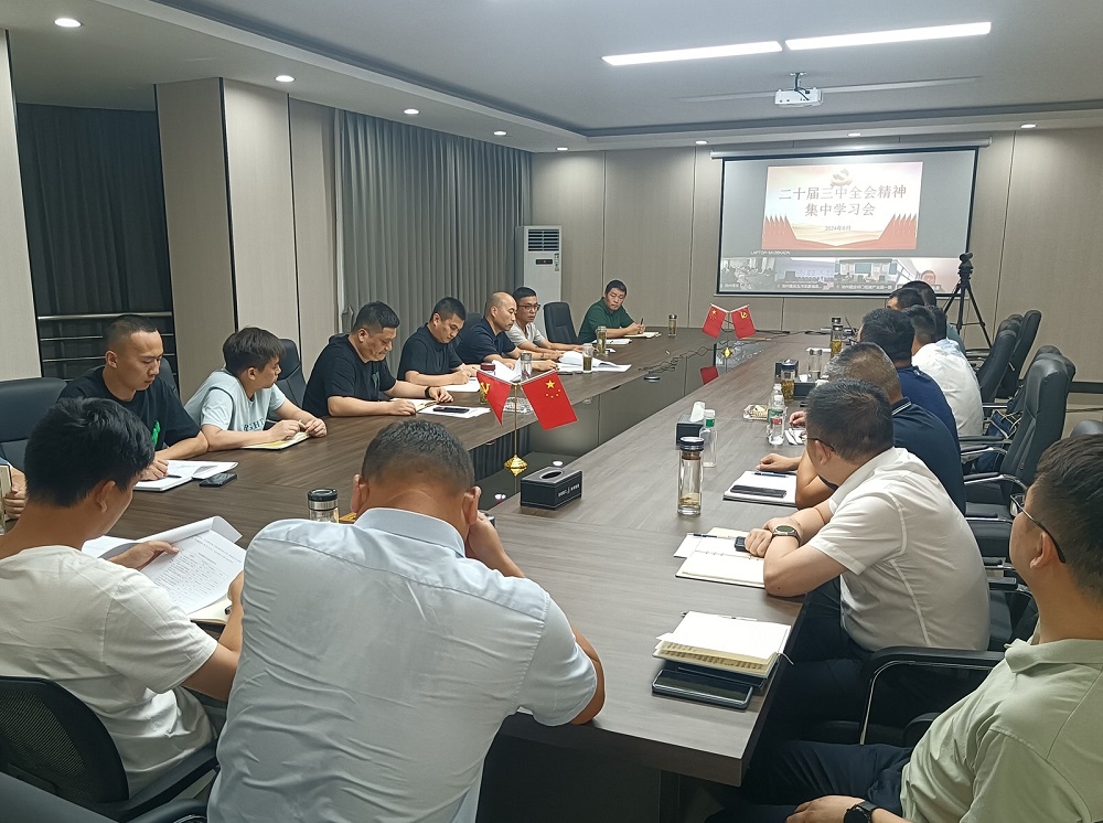 8月6日下午14:00,池州建投召開集中學習會,傳達學習黨的二十屆三中全會精神,池州建投領導班子成員、各部門負責人、各項目經理共計20余人在主會場參加會議,其他項目班子成員及項目部門負責人視頻參加會議。