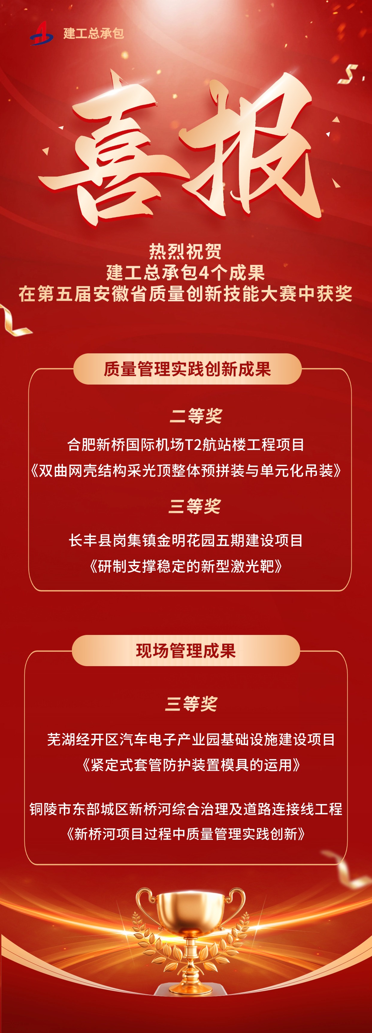 12月2日至5日,第五屆安徽省質量創新技能大賽在淮南舉行,建工總承包代表安徽建工集團現場發布作品,4個項目從348個參賽項目中脫穎而出,分獲質量創新和現場管理類二、三等獎。
