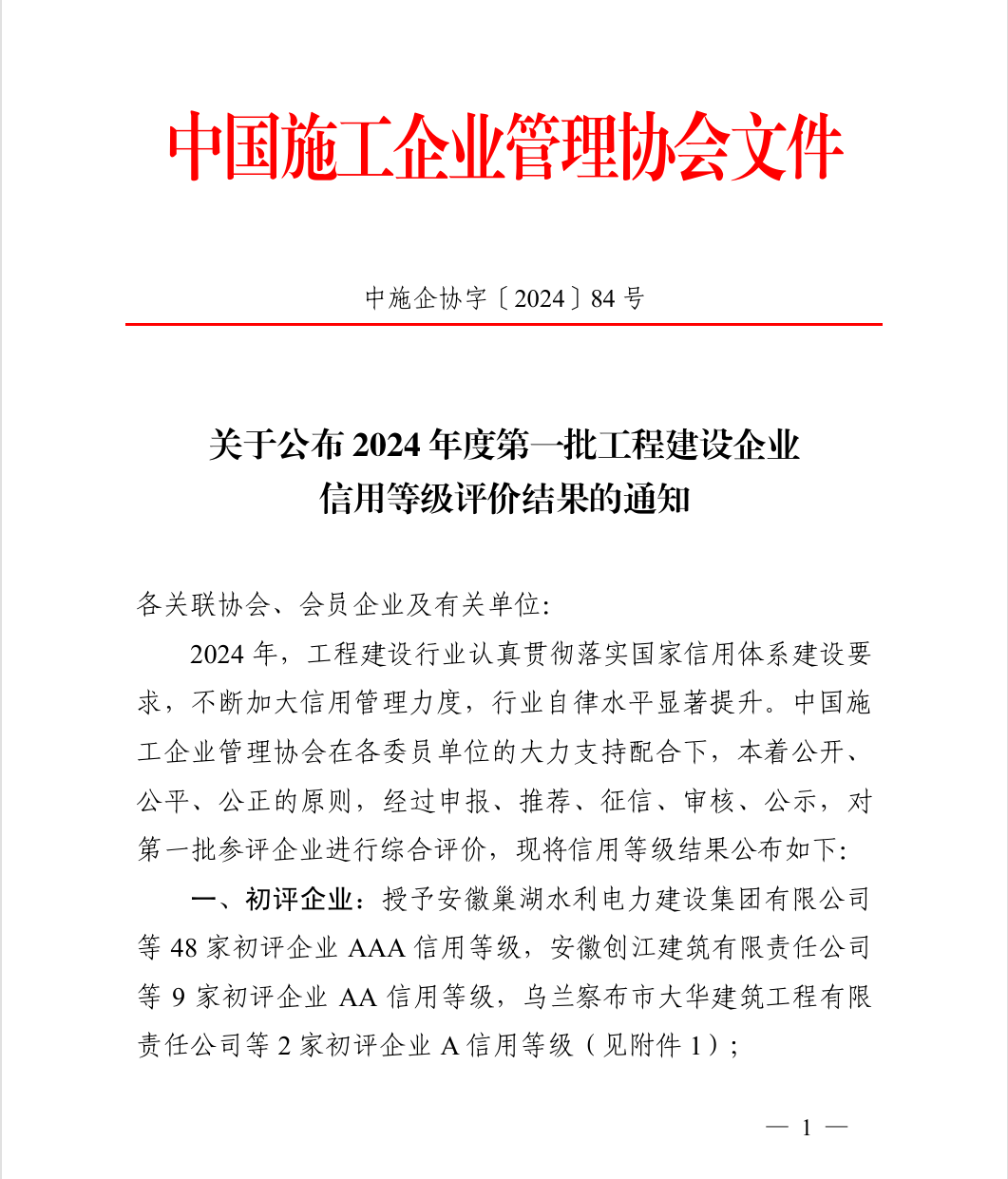 本次信用成績的取得,不僅是對安徽水利工程建設(shè)、經(jīng)營管理、人力資源、企業(yè)形象等多方面、全方位的高度認可,更是安徽水利綜合實力和發(fā)展成就的充分展現(xiàn)。