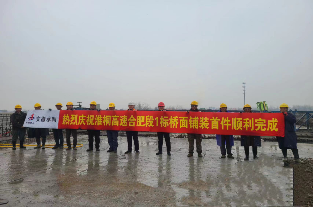 12月4日,安徽水利淮桐高速合肥段1標順利完成首件橋面鋪裝工程施工。