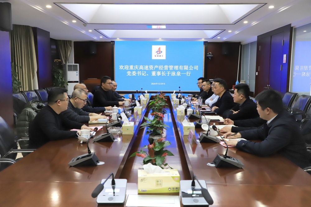 12月9日下午,重慶高速資產經營管理有限公司黨委書記、董事長于泳泉一行到訪建工商貿物流,公司黨委副書記、總經理張俊熱情接待并舉行工作會談。