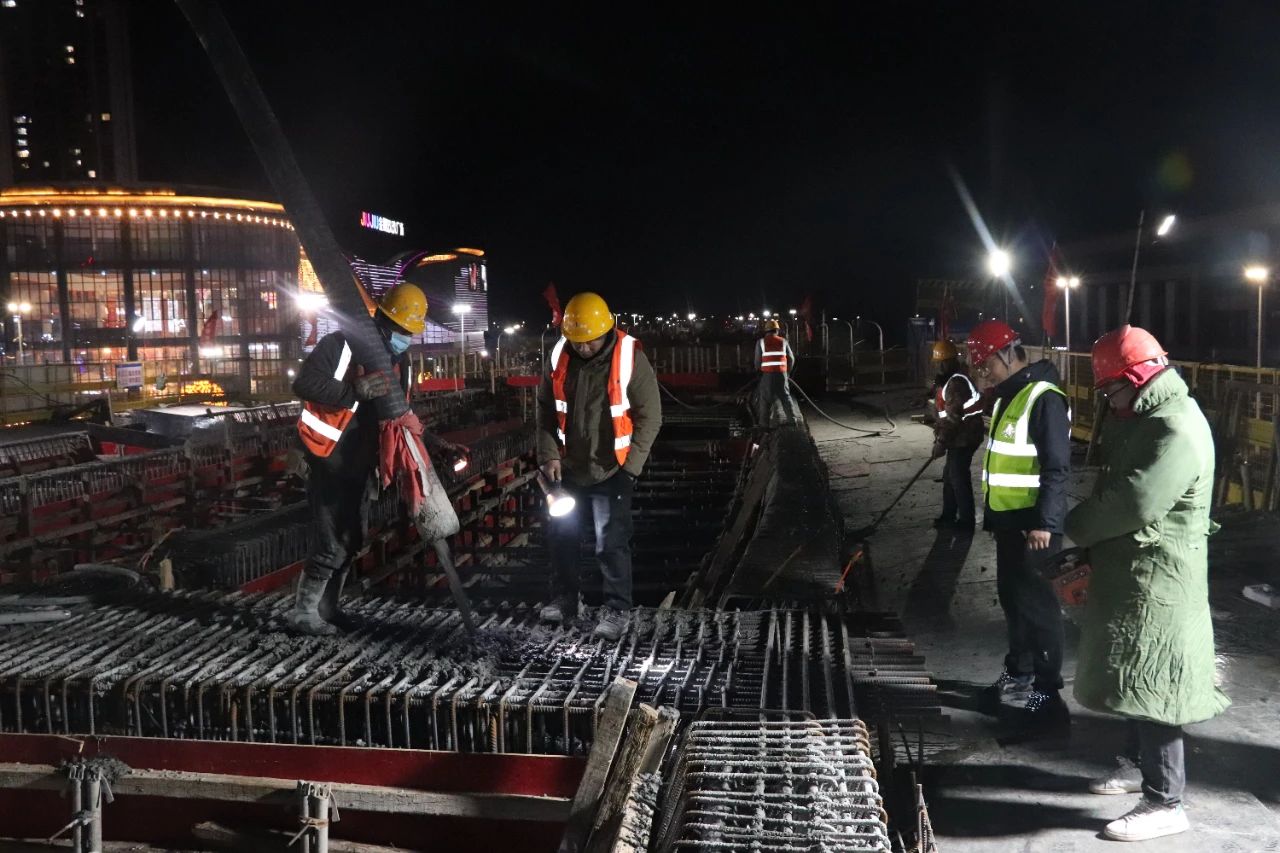 12月9日凌晨1點左右,王杰繞著剛剛澆筑的延安路大橋北岸主線引橋第9聯底腹板和A匝道第2聯頂板仔細巡查一遍,向后場拌和站和項目施工群發送完報備信息后回到宿舍。