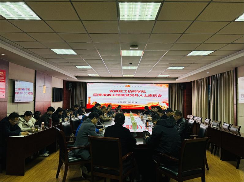 12月11日下午,安徽建工技師學院2024年度政工例會暨黨外人士座談會在辦公樓三樓會議室召開,水湖校區同步視頻參會。院領導、各黨支部(副)書記、黨外人士代表、黨委工作部(人力資源部)負責人等參加會議。會議由黨委委員、紀委書記朱榮合主持。
