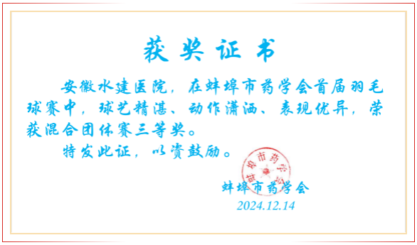 我院藥劑科副主任張一鳴帶領科室5名羽毛球愛好者參加此次比賽。比賽過程驚喜不斷,比分不斷刷新,面對對手,我院選手沉著冷靜、敢打敢拼,每一分都力爭到底,經過多輪激烈角逐,我院代表團最終榮獲混合團體賽三等獎。