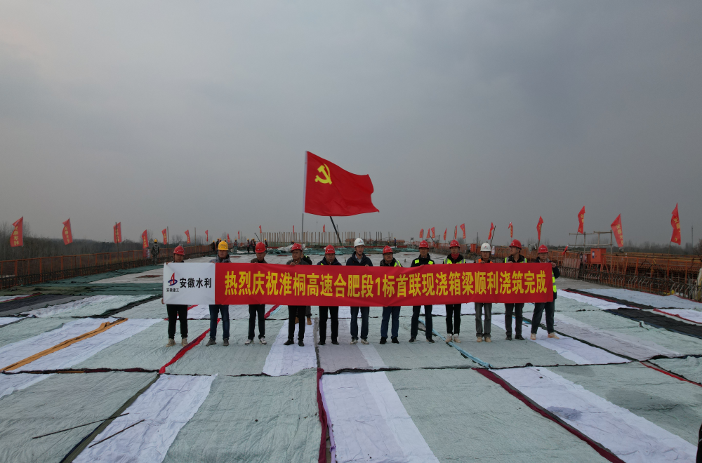 近日,安徽水利承建的淮桐高速合肥段1標(biāo)段首聯(lián)現(xiàn)澆箱梁成功澆筑,全面吹響“決勝四季度”沖鋒號角,受到安徽日報、新安晚報等主流媒體關(guān)注報道。