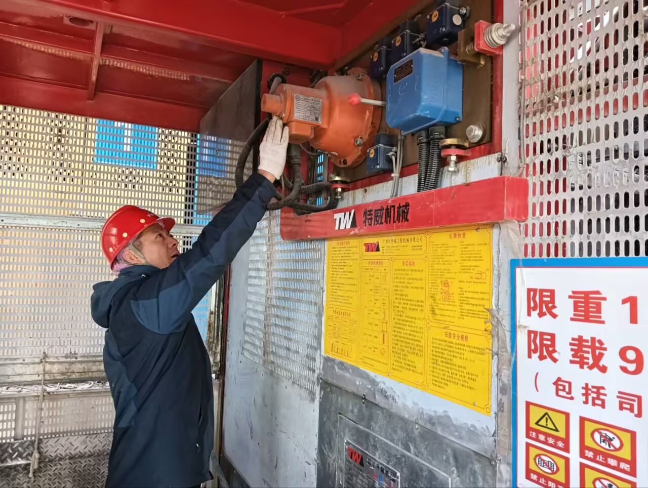 建工交航安全環保監察部聯合設備專家組成檢查小組,深入各在建項目施工現場,對塔吊的基礎穩定性、塔身垂直度、各部件連接螺栓緊固情況進行詳細檢查,同時查看維護保養記錄,確保設備維護保養工作按規定執行。對施工升降機的防墜安全器、上下限位開關、樓層防護門等關鍵安全裝置進行逐一測試,不放過任何一個安全細節。