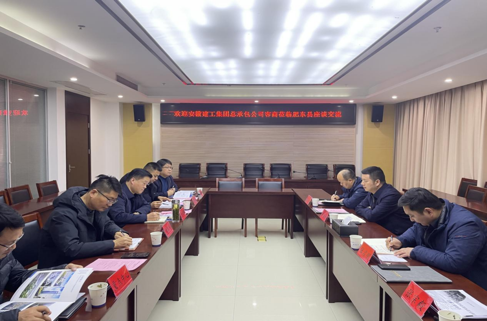 12月23日下午,建工總承包黨委書記、總經(jīng)理傅宏林率隊(duì)拜訪肥東縣政府,同副縣長(zhǎng)韋曉暉舉行工作會(huì)談。