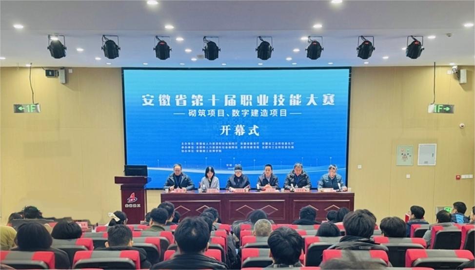 12月24日,安徽省第十屆職業技能大賽(砌筑項目、數字建造項目)開幕式在安徽建工技師學院水湖校區舉行。學院黨委副書記、院長黃國平致辭并宣布賽事啟動。河北涿州技師學院副院長、砌筑項目裁判長李賀楠,廣東城市技師學院土木工程學院副書記、數字建造項目裁判長古娟妮,學院黨委委員、副院長呂良玉等相關院領導和部門負責人出席。