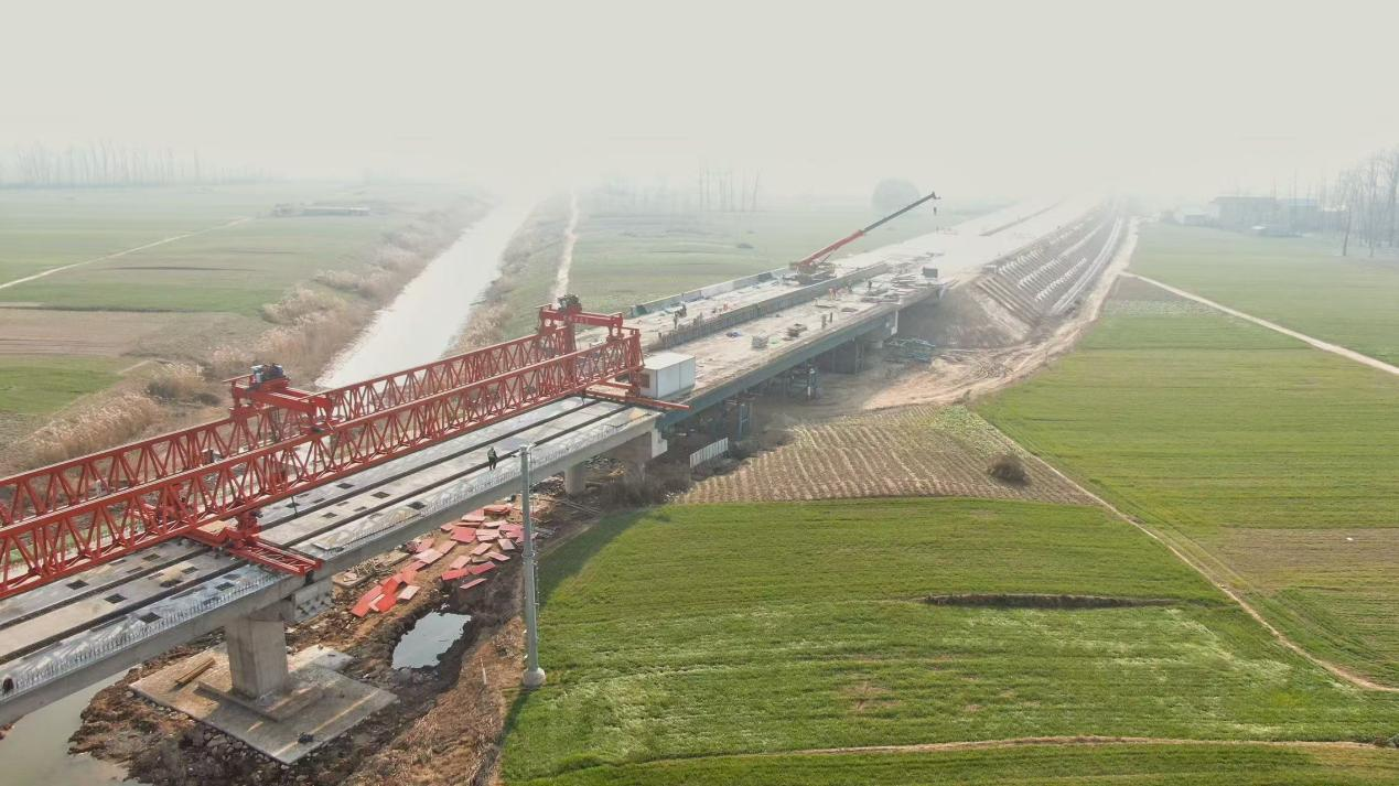 12月25日,歷經(jīng)6天艱苦奮斗,隨著架橋機精準無誤地移位并圓滿完成落梁作業(yè),徐淮阜高速項目迎來了振奮人心的里程碑時刻——徐淮阜高速湘西河大橋右幅順利貫通,完成全線貫通的重大突破。