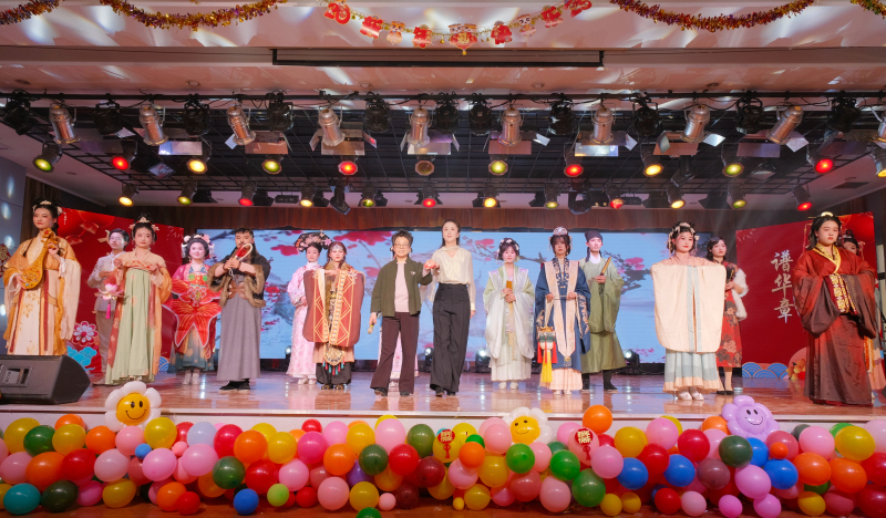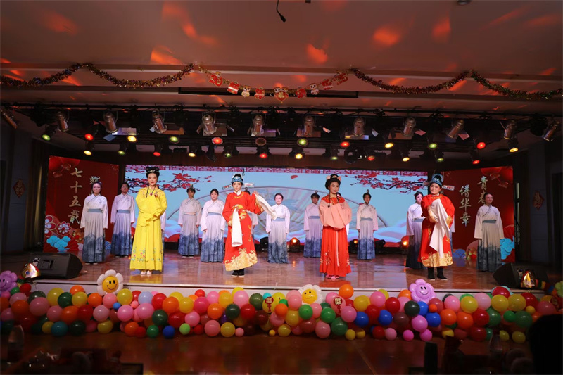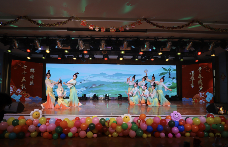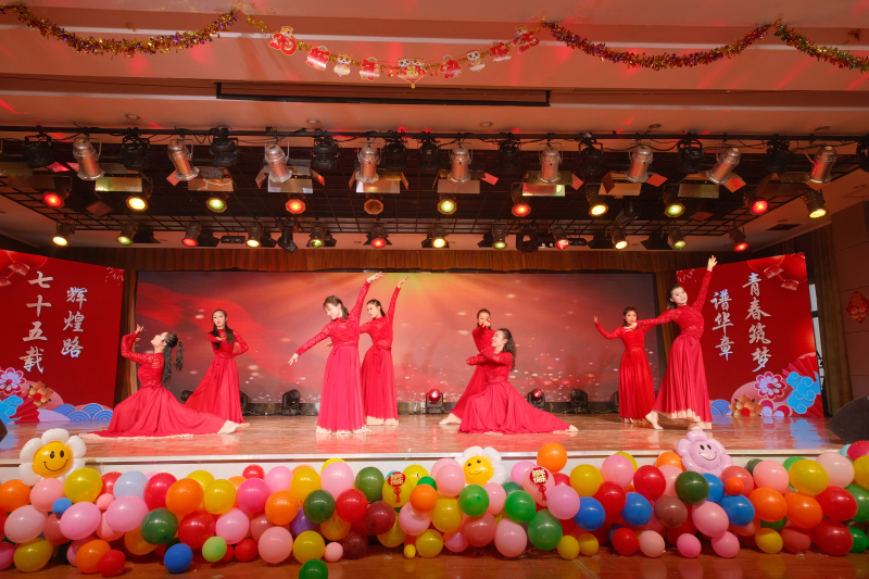聯歡會表演以“七十五載輝煌路,青春筑夢譜華章”為主題,融入了思政教育內容,涵蓋歌曲、舞蹈、戲曲、詩朗誦、國風走秀等18個節目,來自學院五系和相關部門的200余名參演師生精心準備、傾情表演,為全院師生呈現了一場視聽盛宴,生動展現了全院上下凝心聚力,奮力譜寫學院高質量發展新篇章的良好精神風貌和以頑強拼搏的精神開啟2025年新歲坦途的昂揚斗志!演出現場掌聲不斷,氣氛熱烈,臺上臺下匯聚成一片歡樂的海洋,晚會在大型歌舞《我的中國心》的歌聲中圓滿落下帷幕。