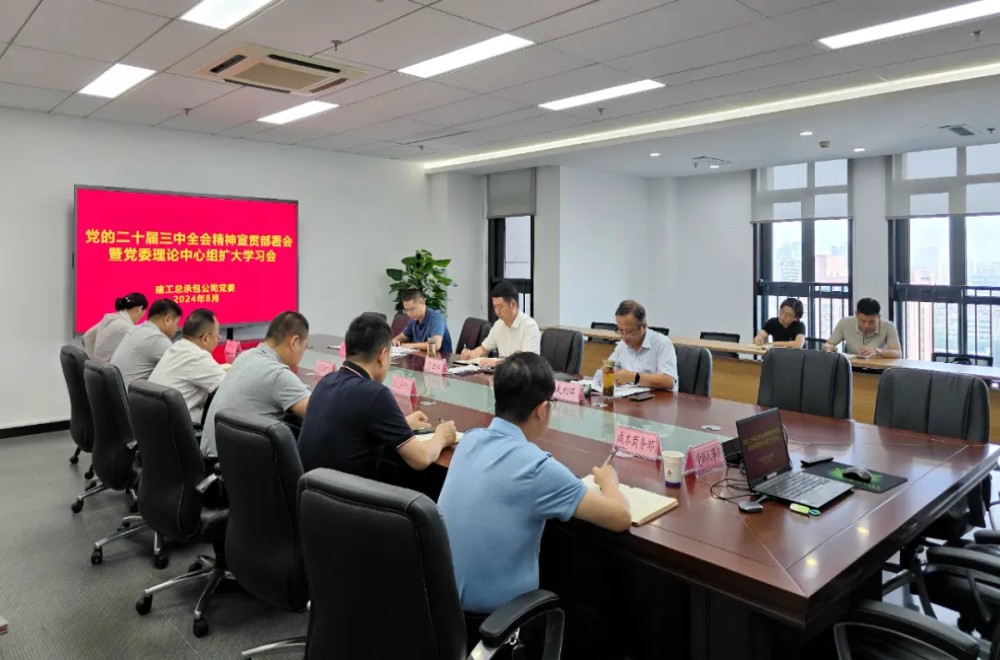 8月21日,建工總承包黨委書記、總經理傅宏林在安建國際大廈12樓主持召開黨的二十屆三中全會精神學習宣貫部署會,公司黨委理論學習中心組成員、機關部門相關負責人參加。