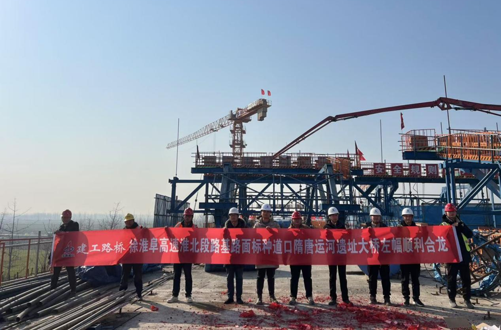 1月20日上午,隨著最后一方混凝土澆筑完成,徐淮阜高速淮北段項目種道口隋唐運河遺址大橋左幅順利合龍,項目進(jìn)入全線貫通最后沖刺階段。