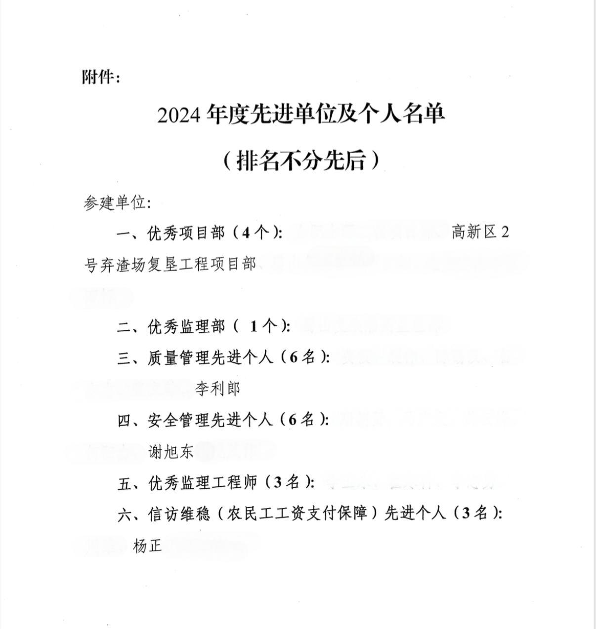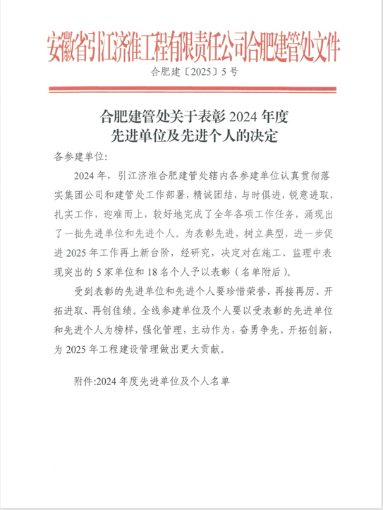 近日,建工路港高新區(qū)2號棄渣場復(fù)墾工程項目部受到業(yè)主單位安徽省引江濟(jì)淮工程有限責(zé)任公司合肥建管處表彰,合肥建管處授予項目部“優(yōu)秀項目部”榮譽(yù)稱號,授予項目職工李利郎“質(zhì)量管理先進(jìn)個人”、謝旭東“安全管理先進(jìn)個人”、楊正“信訪維穩(wěn)(農(nóng)民工工資支付保障)先進(jìn)個人”榮譽(yù)稱號。
