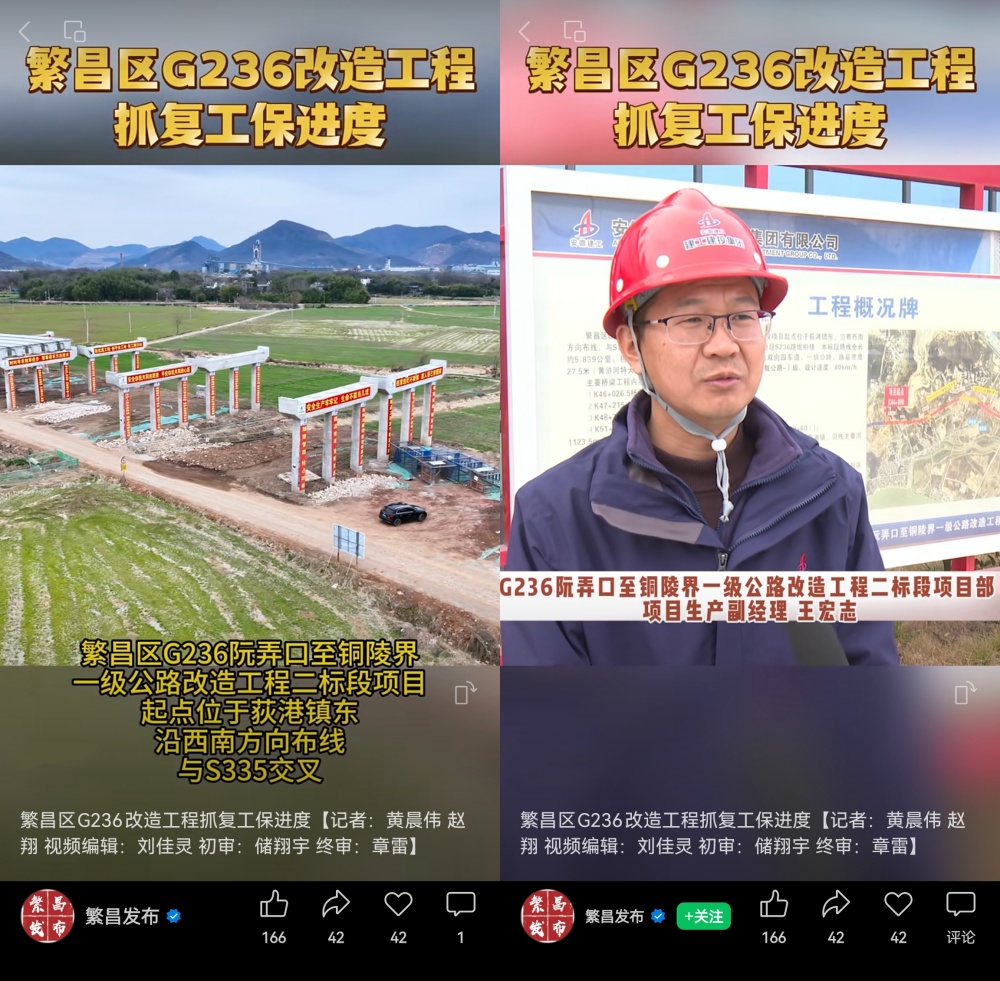 春節假期剛過,由建工建投集團承建的繁昌區G236項目已全面復工復產,迅速掀起大干快上“新”熱潮。“繁昌發布”視頻號、“繁昌新聞網”深入一線展開報道。