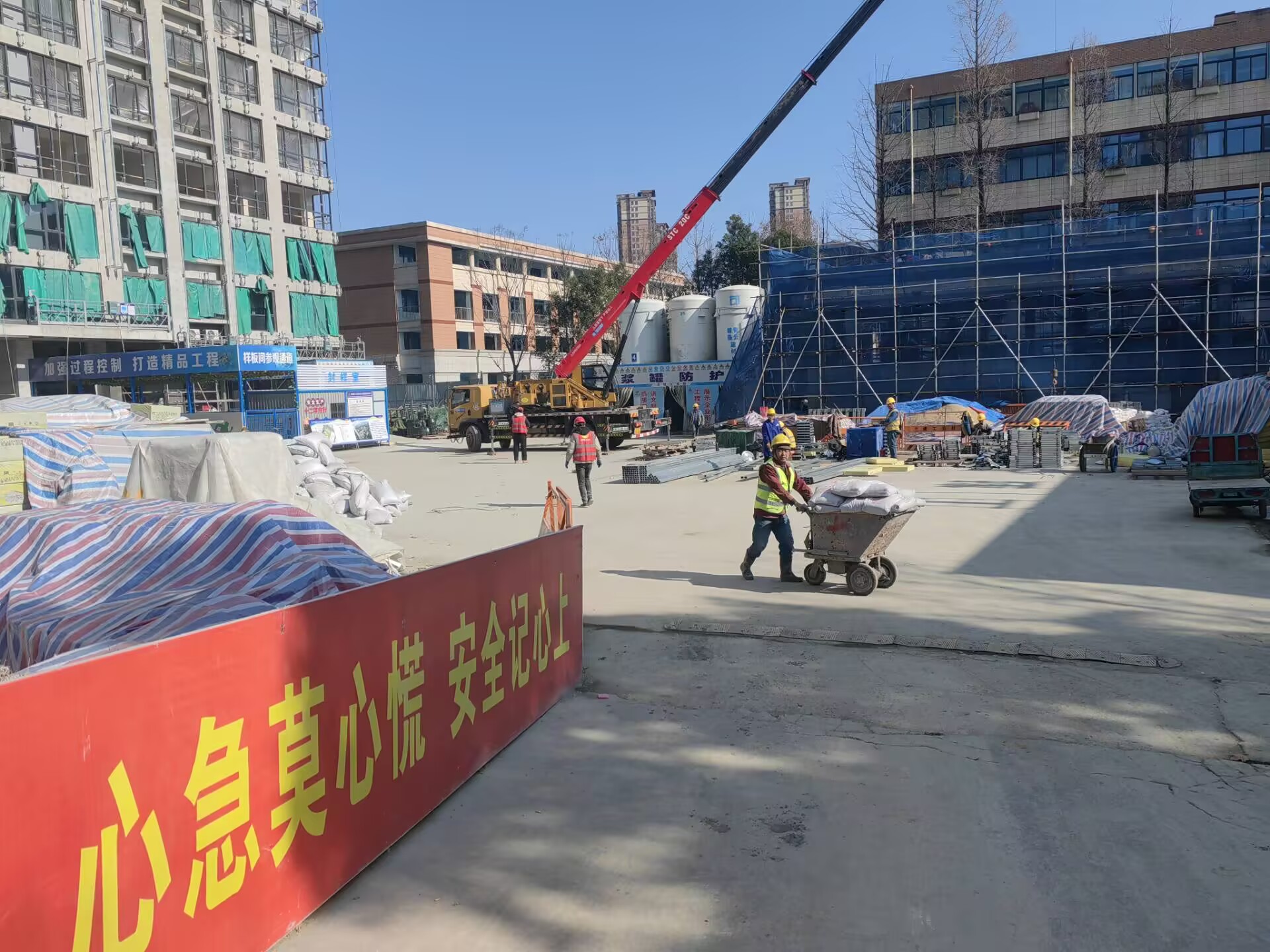 節后復工,安全是第一位的。項目部在復工前對施工現場進行了拉網式排查,重點檢查了深基坑、高支模、腳手架等危險性較大的分部分項工程,對發現的安全隱患立即整改,確保施工安全。同時,為了保障施工進度,項目部合理安排施工人員和機械設備,確保各項施工任務按時完成。