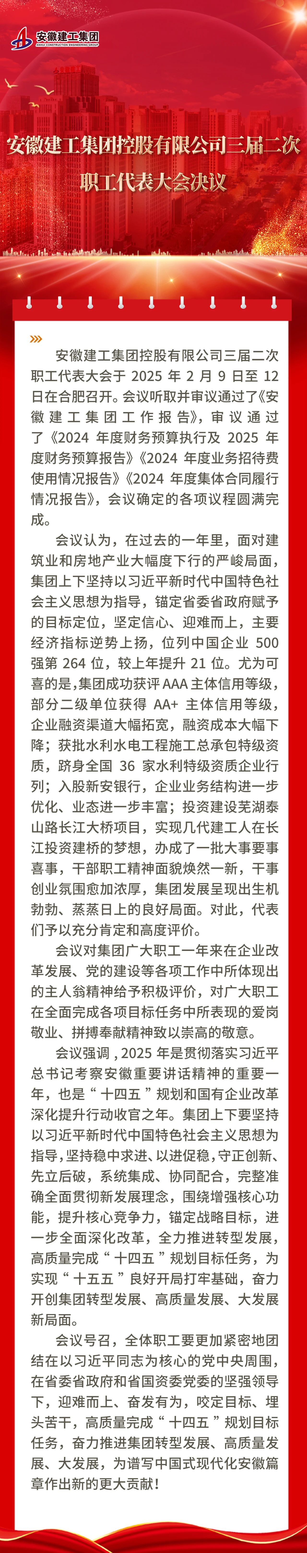 安徽建工集團(tuán)控股有限公司三屆二次職工代表大會(huì)決議
