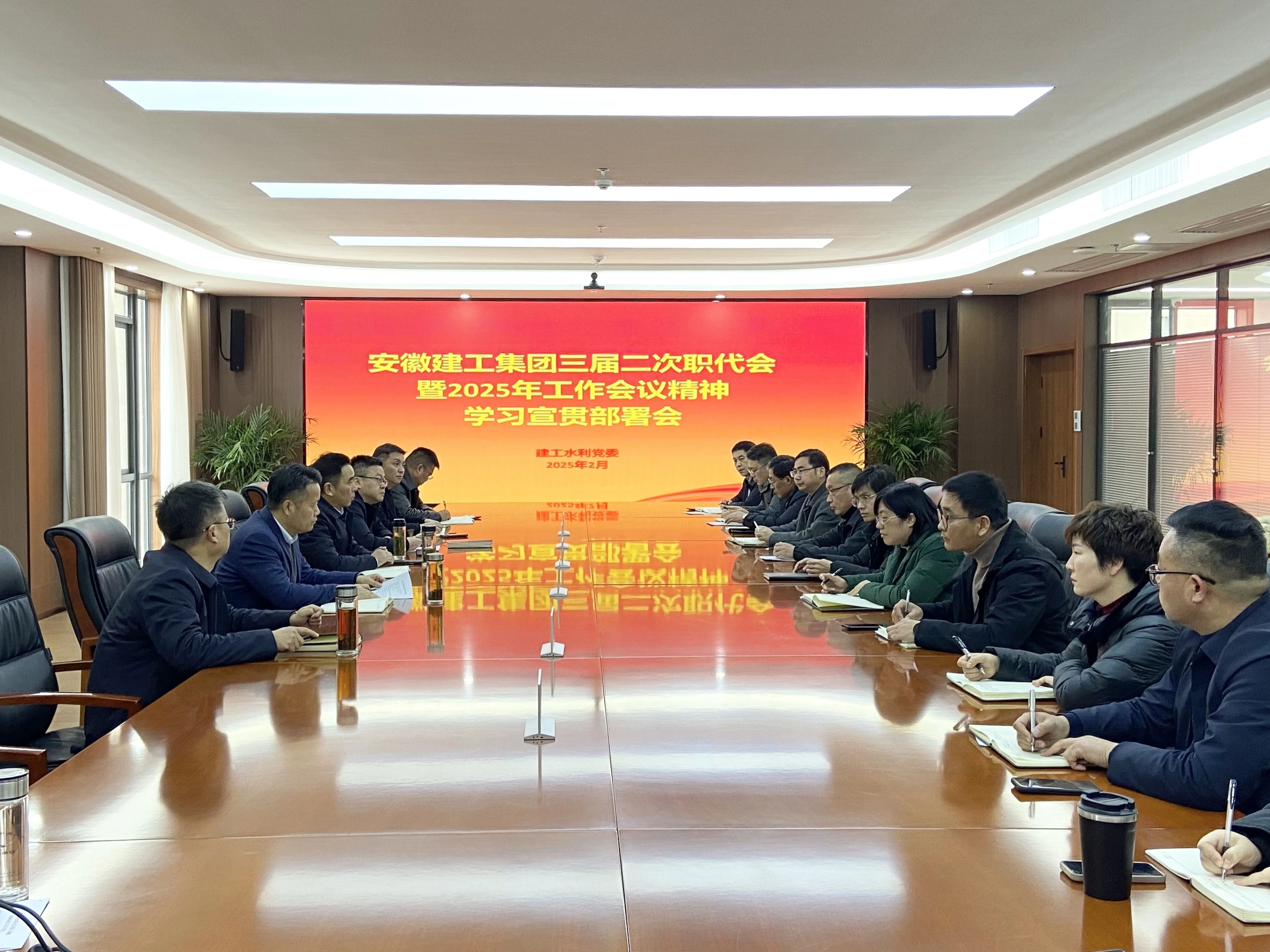 2月14日,建工水利黨委召開集團三屆二次職代會暨2025年工作會議精神學習宣貫部署會。公司領導班子成員、機關部門負責人參加會議。與會人員結合自身工作職責,進行了交流研討。